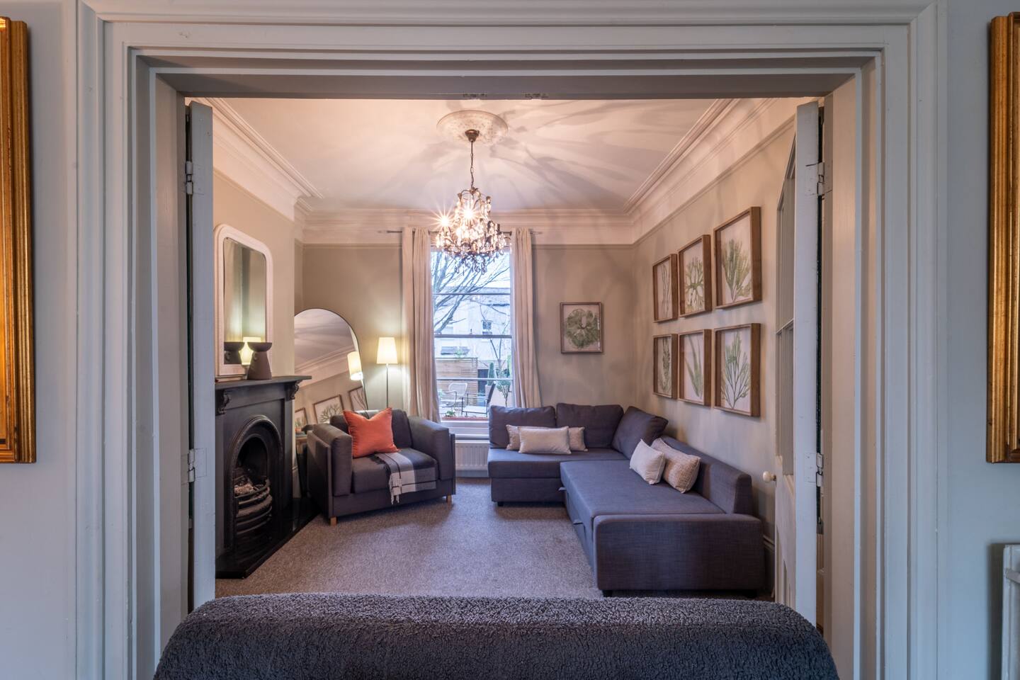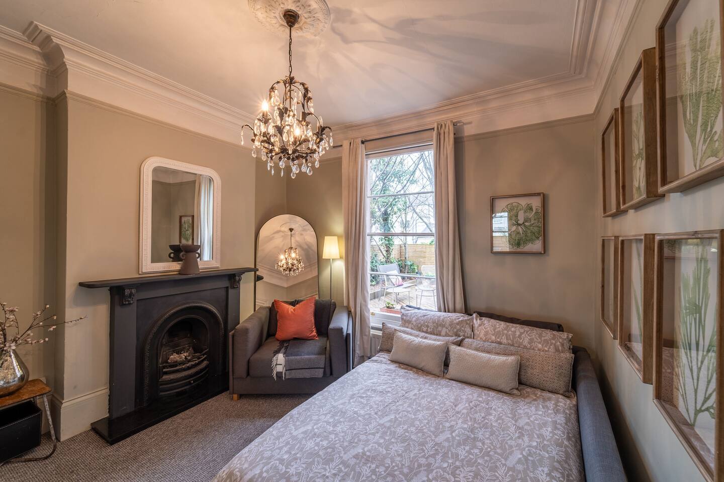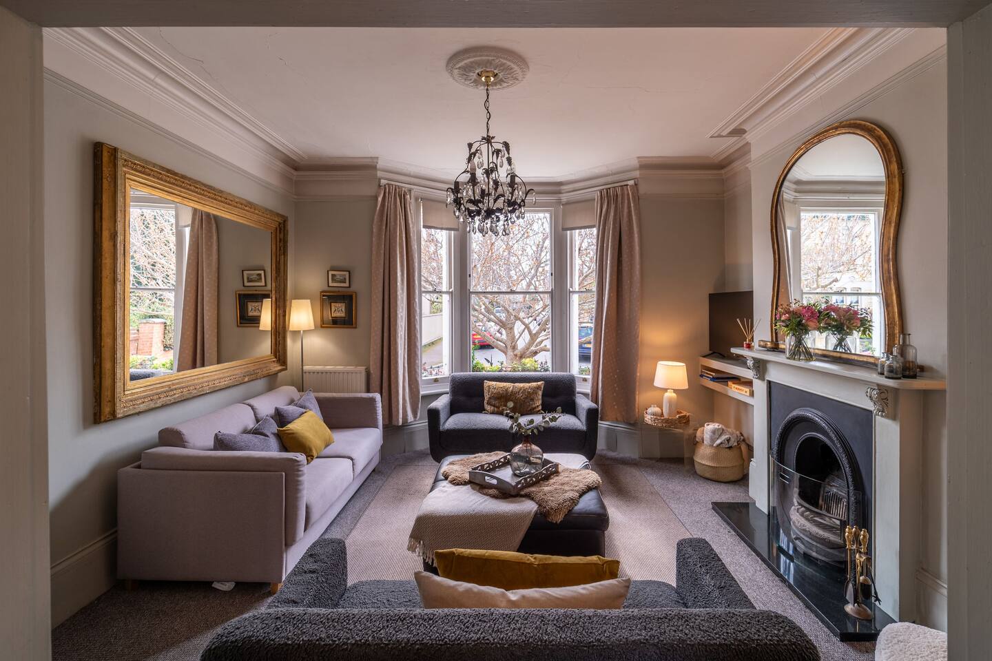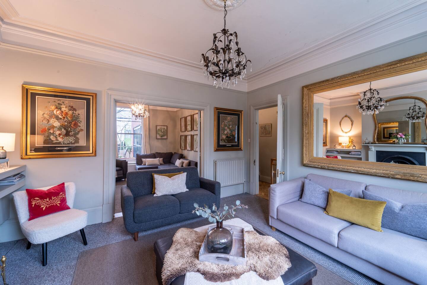 Welcome to our stunning Victorian townhouse, a perfect blend of historical charm and modern comfort in the heart of Cheltenham. The house is set over three floors, retaining its beautiful original features like high ceilings, grand sash windows, and an open fireplace perfect for cosy evenings. The ground floor features two separate lounge areas with plenty of seating, a convenient cloakroom, and a well-equipped kitchen with a dining space for your group to gather. The kitchen has everything you need for your stay: * 5-ring induction hob and range oven * Fridge and freezer * Nespresso machine, cafetière, and stove-top espresso pot * Microwave, kettle, and toaster From the kitchen, step out into the enclosed rear garden with its decking, flagstone patio, outdoor furniture, and a fire pit - the perfect spot to enjoy warmer evenings. Our home comfortably sleeps up to 8 guests across five flexible sleeping areas: * Bedroom 1: King-size bed * Bedroom 2: Double bed * Bedroom 3: Single bed * Bedroom 4: Super-king bed * Bedroom 5 / Private Living Area: A double sofa bed with a memory foam topper. This room can be a private bedroom while retaining the front lounge for socializing. We provide comfy mattresses and super-soft bed linen to ensure a restful night's sleep. A travel cot is also available upon request. The spacious family bathroom features a luxurious roll-top bath, a double sink, and a separate free-standing shower. You will also find laundry facilities in this room.