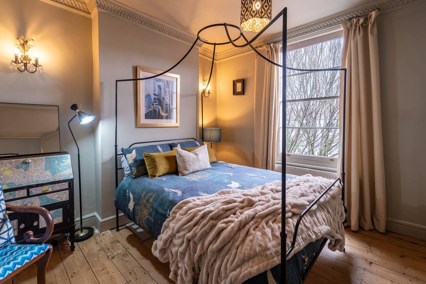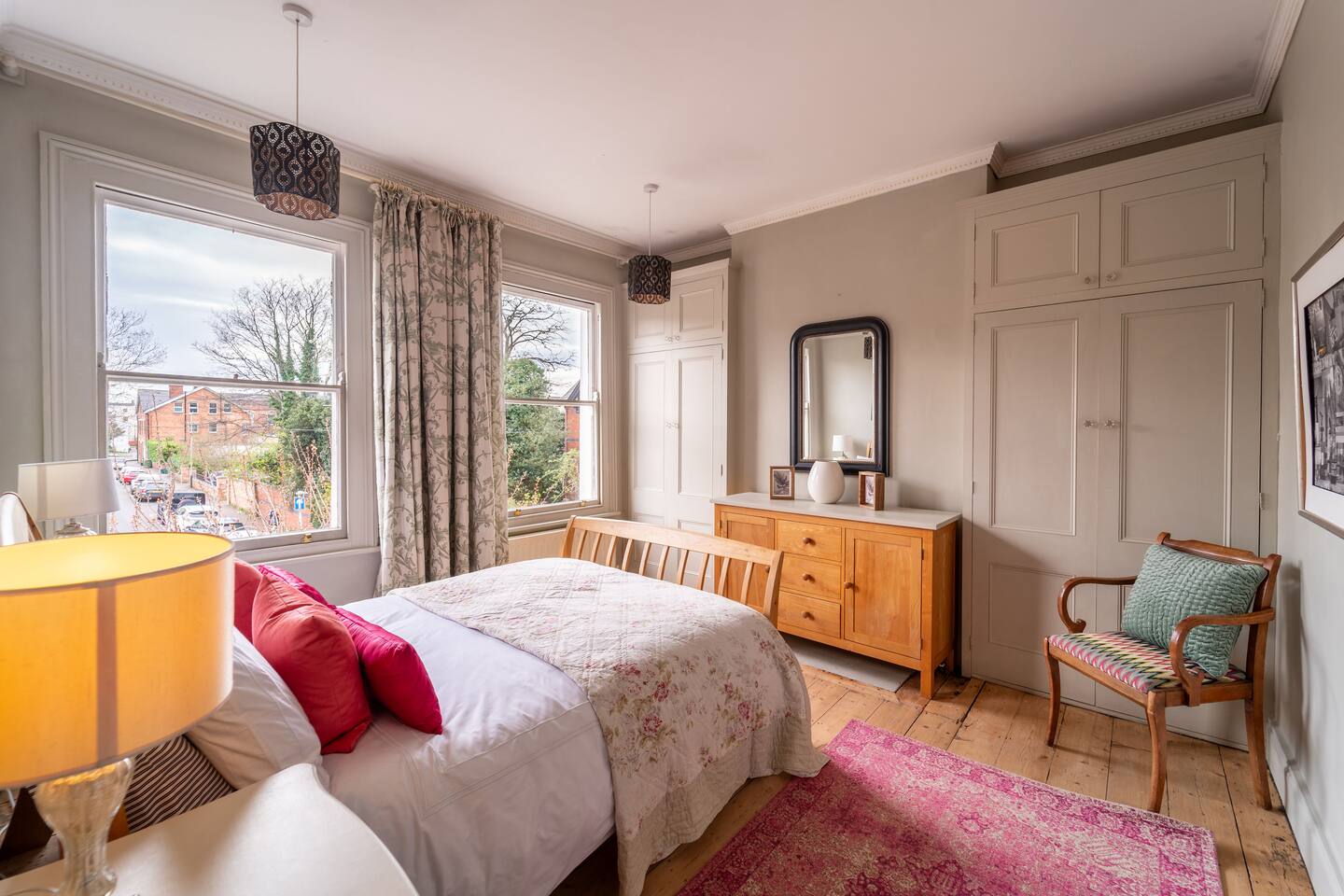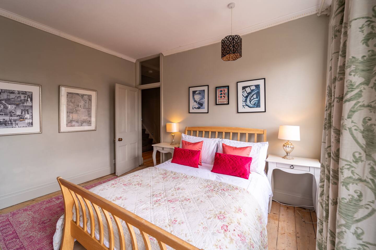 Welcome to our stunning Victorian townhouse, a perfect blend of historical charm and modern comfort in the heart of Cheltenham. The house is set over three floors, retaining its beautiful original features like high ceilings, grand sash windows, and an open fireplace perfect for cosy evenings. The ground floor features two separate lounge areas with plenty of seating, a convenient cloakroom, and a well-equipped kitchen with a dining space for your group to gather. The kitchen has everything you need for your stay: * 5-ring induction hob and range oven * Fridge and freezer * Nespresso machine, cafetière, and stove-top espresso pot * Microwave, kettle, and toaster From the kitchen, step out into the enclosed rear garden with its decking, flagstone patio, outdoor furniture, and a fire pit - the perfect spot to enjoy warmer evenings. Our home comfortably sleeps up to 8 guests across five flexible sleeping areas: * Bedroom 1: King-size bed * Bedroom 2: Double bed * Bedroom 3: Single bed * Bedroom 4: Super-king bed * Bedroom 5 / Private Living Area: A double sofa bed with a memory foam topper. This room can be a private bedroom while retaining the front lounge for socializing. We provide comfy mattresses and super-soft bed linen to ensure a restful night's sleep. A travel cot is also available upon request. The spacious family bathroom features a luxurious roll-top bath, a double sink, and a separate free-standing shower. You will also find laundry facilities in this room.
