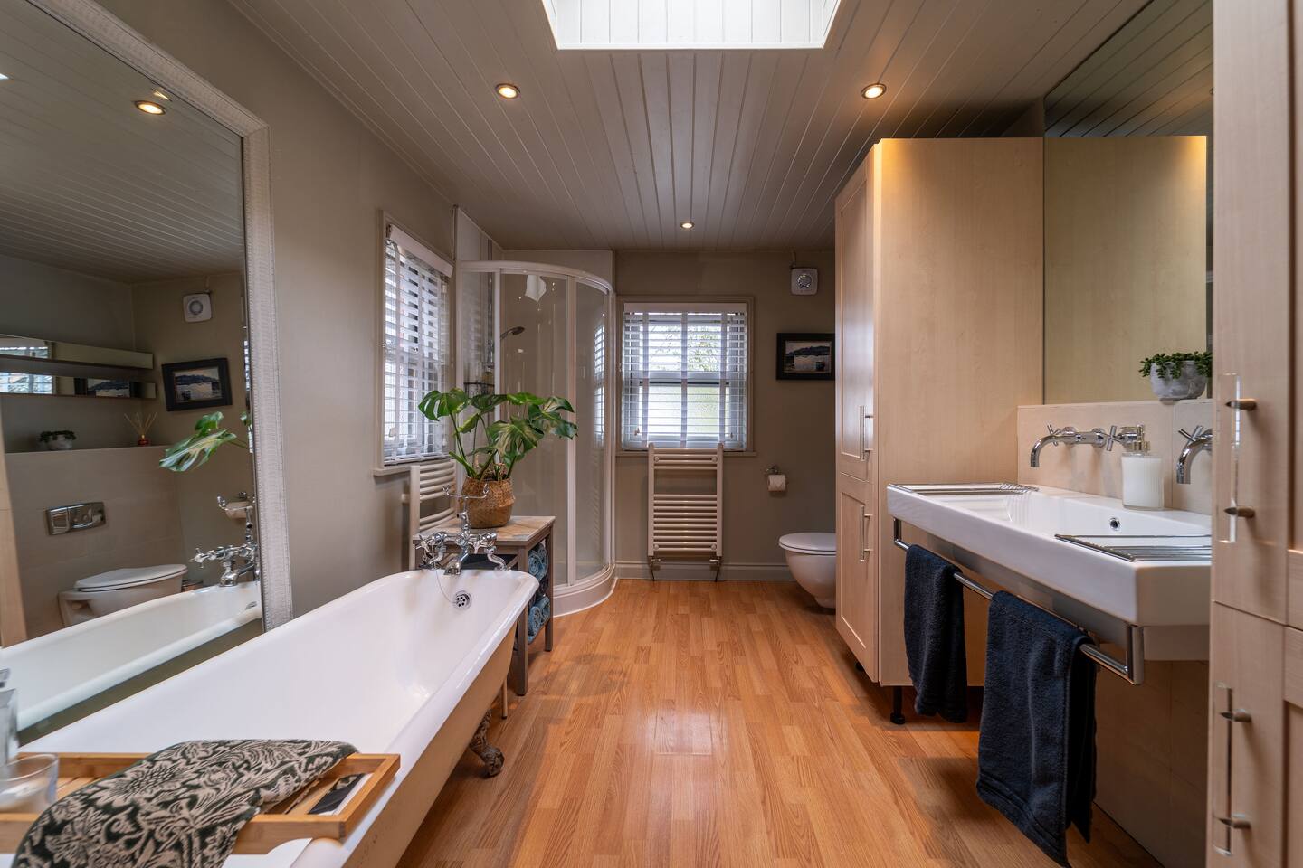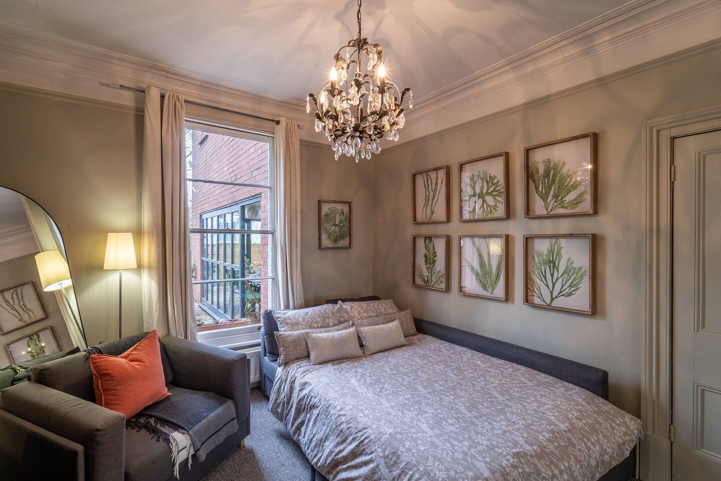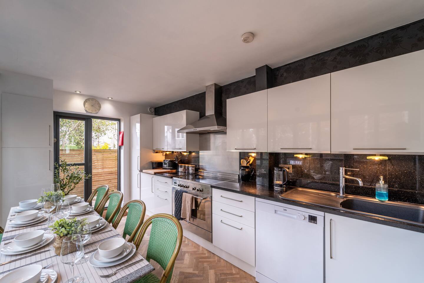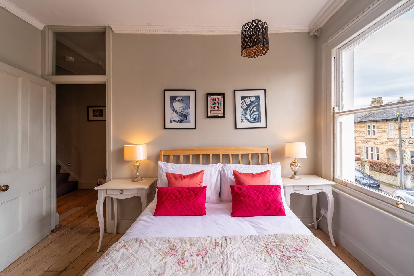 Welcome to our stunning Victorian townhouse, a perfect blend of historical charm and modern comfort in the heart of Cheltenham. The house is set over three floors, retaining its beautiful original features like high ceilings, grand sash windows, and an open fireplace perfect for cosy evenings. The ground floor features two separate lounge areas with plenty of seating, a convenient cloakroom, and a well-equipped kitchen with a dining space for your group to gather. The kitchen has everything you need for your stay: * 5-ring induction hob and range oven * Fridge and freezer * Nespresso machine, cafetière, and stove-top espresso pot * Microwave, kettle, and toaster From the kitchen, step out into the enclosed rear garden with its decking, flagstone patio, outdoor furniture, and a fire pit - the perfect spot to enjoy warmer evenings. Our home comfortably sleeps up to 8 guests across five flexible sleeping areas: * Bedroom 1: King-size bed * Bedroom 2: Double bed * Bedroom 3: Single bed * Bedroom 4: Super-king bed * Bedroom 5 / Private Living Area: A double sofa bed with a memory foam topper. This room can be a private bedroom while retaining the front lounge for socializing. We provide comfy mattresses and super-soft bed linen to ensure a restful night's sleep. A travel cot is also available upon request. The spacious family bathroom features a luxurious roll-top bath, a double sink, and a separate free-standing shower. You will also find laundry facilities in this room.